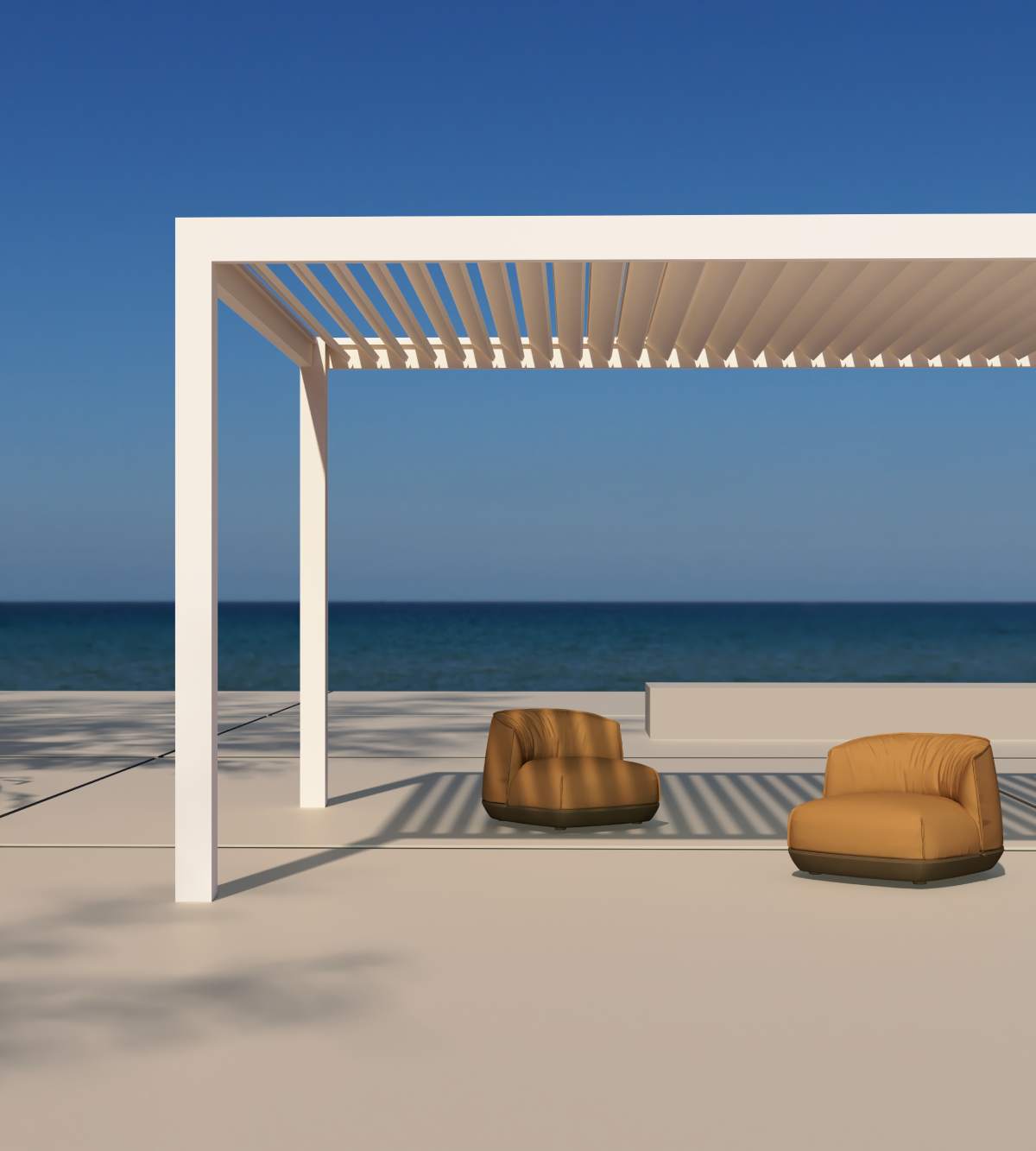 Le pergole bioclimatiche garantiscono in modo naturale un ottimale comfort climatico al variare delle condizioni atmosferiche, grazie alla copertura costruita da lamelle frangisole orientabili.